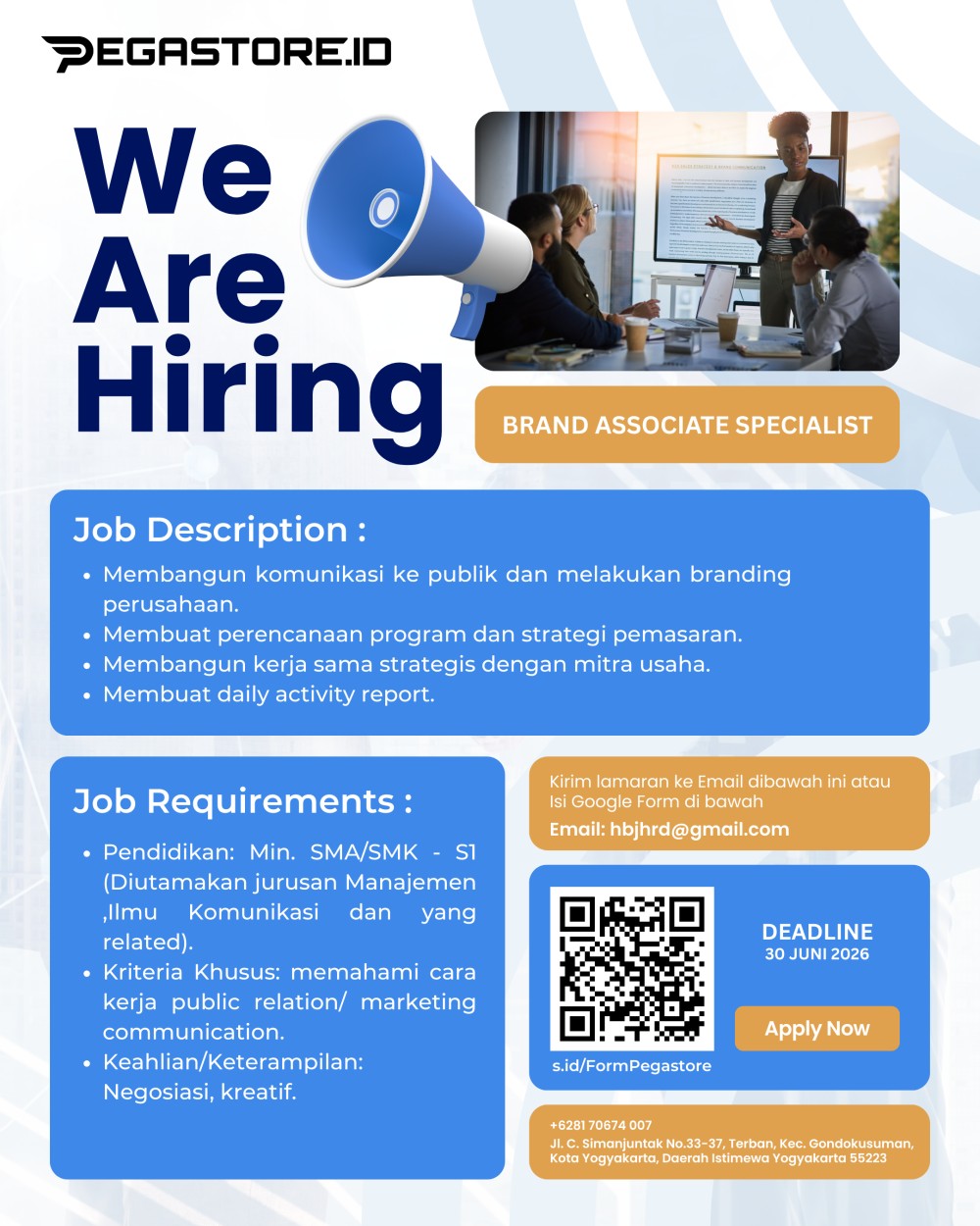 PEGASTORE lagi open opportunity buat kalian yang spill abis di posisi: #BrandAssociateSpecialist (Area Yogyakarta)