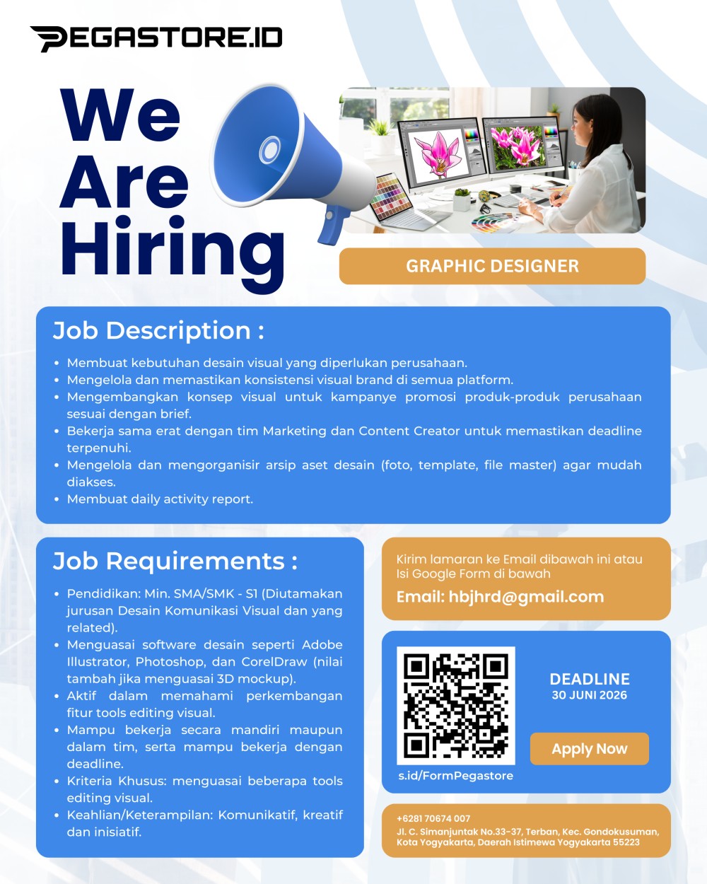 PEGASTORE lagi hunting Talenta terbaik untuk jadi pahlawan visual untuk semua konten kami di posisi : #GraphicDesigner (Area Yogyakarta)