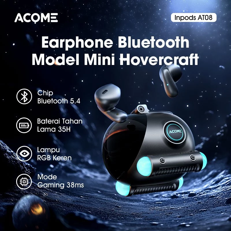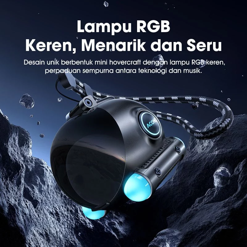 Desain unik berbentuk mini hovercraft dengan lampu RGB keren, perpaduan sempurna antara teknologi dan musik