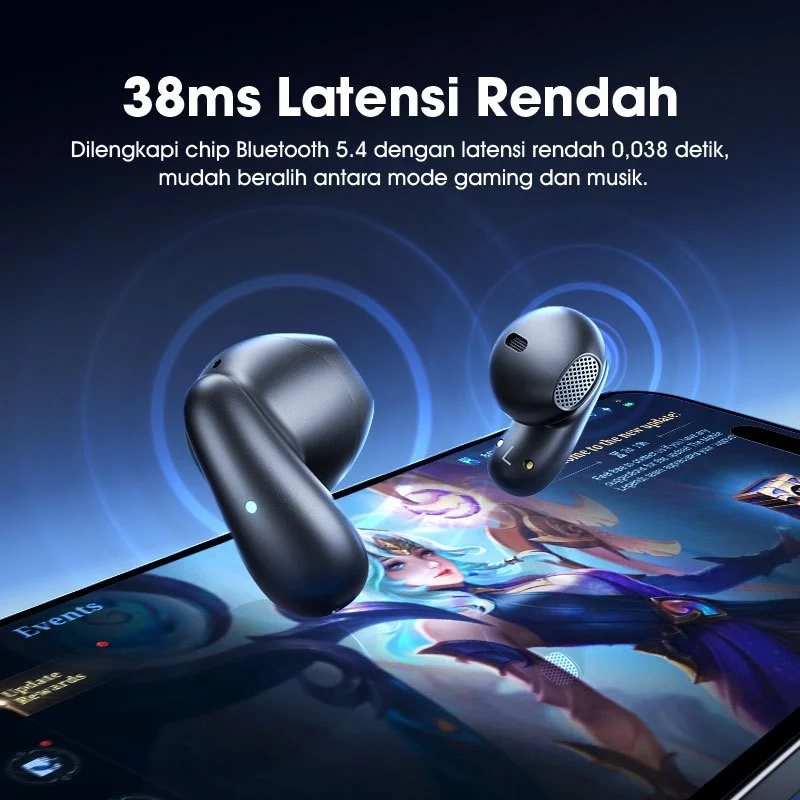 Dilengkapi chip Bluetooth 5.4 dengan latensi rendah 0,038 detik, mudah beralih antara mode gaming dan musik