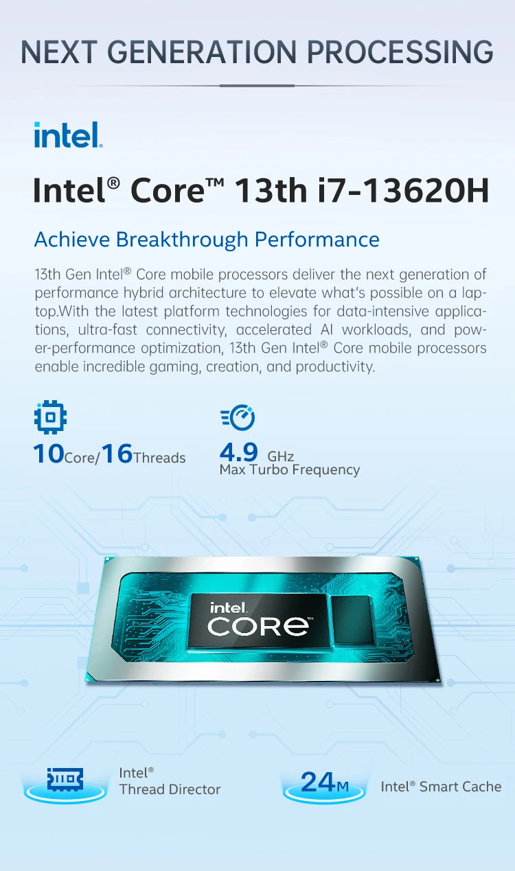 Processor: Intel Core i7-13620H - 10 Cores (6P-4E)
