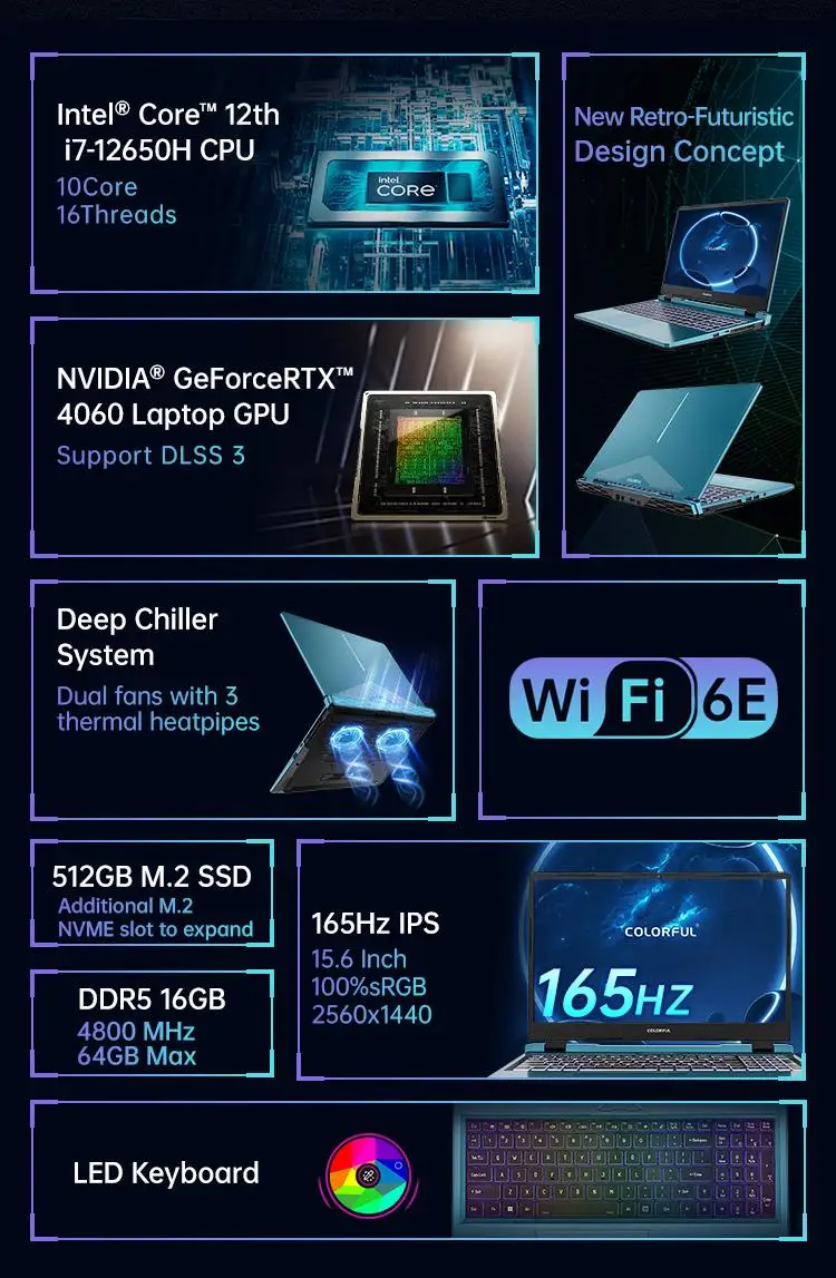 Processor: Intel Core i5-12450H Processor 4.4GHz(12MB Cache,up to 4.4GHz,4P-cores+4E-cores)