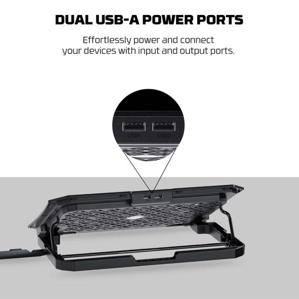 Notebook Cooler NC14 dilengkapi dua kipas berukuran 125 mm yang memiliki kecepatan 800-1000 RPM, menghasilkan aliran udara hingga 45 CFM, siap membantu menurunkan suhu laptop secara efektif. Ditambah dengan adanya efek pencahayaan memberikan sentuhan yang menarik pada setup kamu.