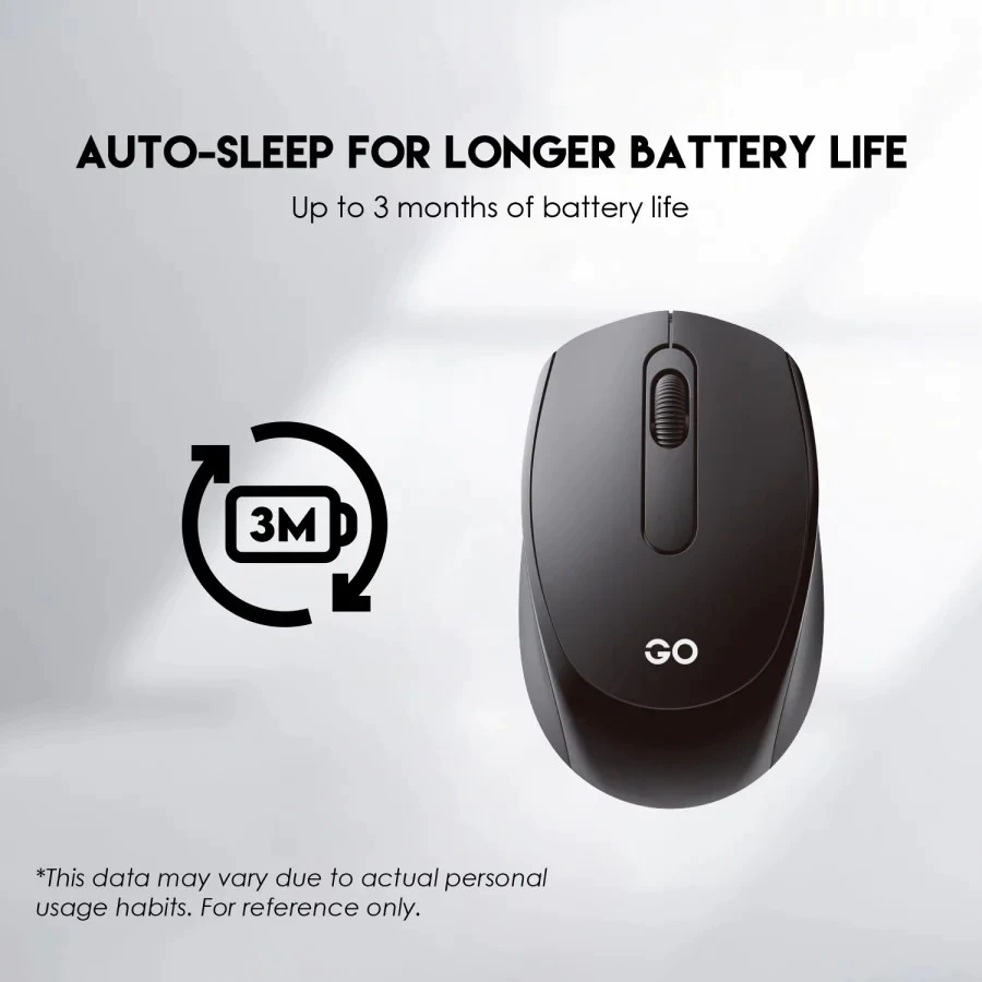 Mouse GO W603 hadir dengan warna hitam, putih, pink, dan juga biru. Kamu bisa pilih dari ke-4 warna mana yang paling cocok dengan gaya kamu!