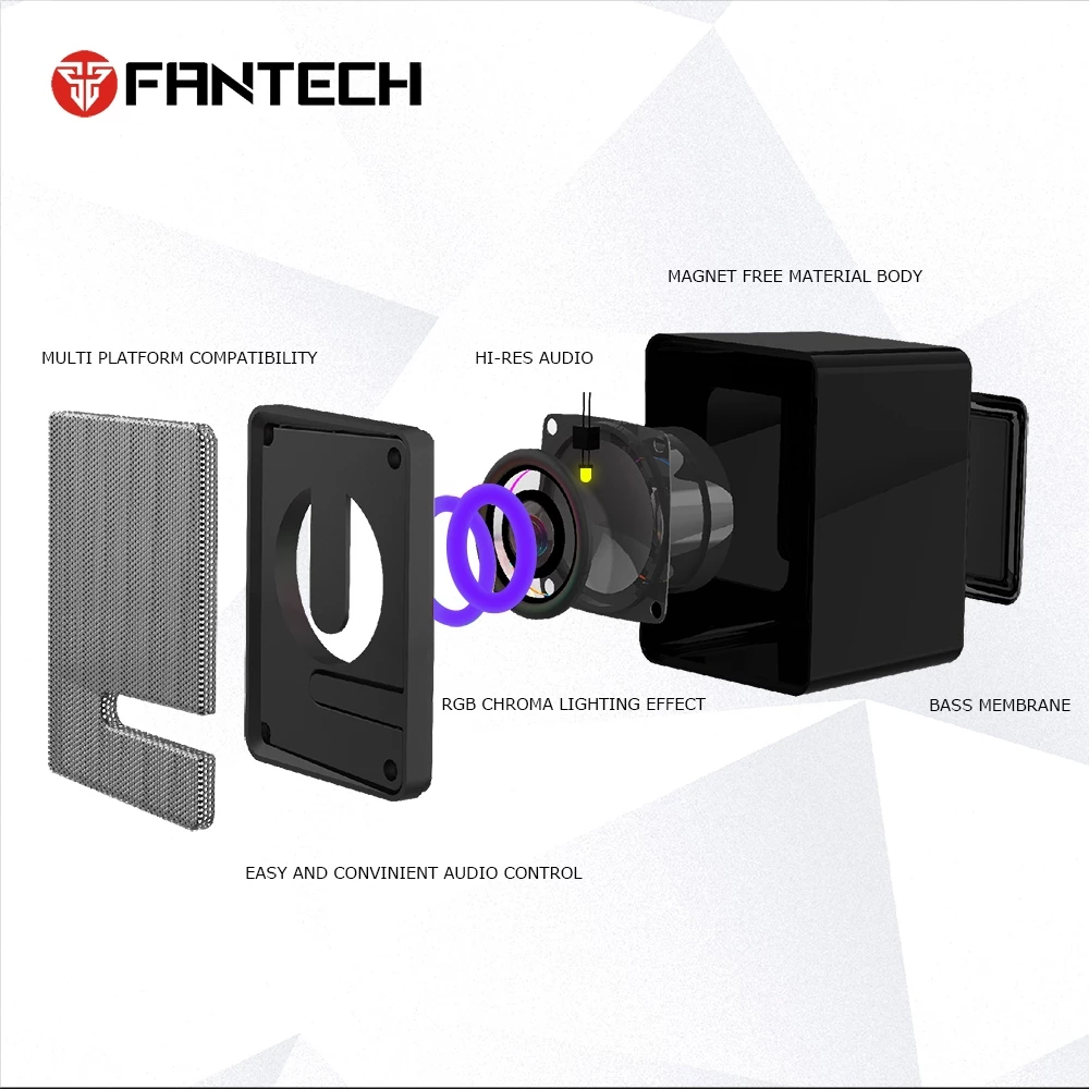 Struktur internal modular GS203 mendukung kompatibilitas multi-platform, efek pencahayaan RGB, serta kontrol audio yang efisien. Dibuat dengan material bebas magnet, speaker ini menjamin performa stabil tanpa gangguan elektromagnetik.