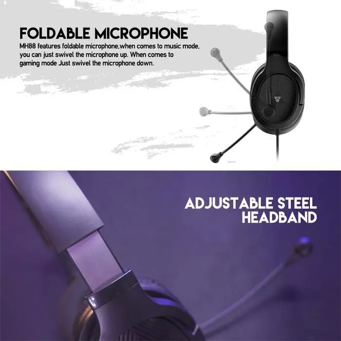 MH88 merupakan headset gaming yang telah dilengkapi dengan foldable microphone yang akan memberikan kenyamanan pada berbagai kondisi penggunaan. Kamu bisa lipat mic keatas saat tidak sedang digunakan, seperti ketika mendengar musik atau menonton vidio. Turunkan kembali mic untuk berkomunikasi dengan rekan satu team dalam permainan multiplayer, atau rekan kerja saat meeting online.