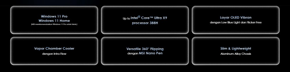 Display : 14″ FHD+(1920×1200), OLED, 100% DCI-P3(Typical), MSI Precision Pen Touch Technology (MPPT), Support MSI Nano Pen, Touchscreen, Low Blue Light & Flicker-free certified by SGS