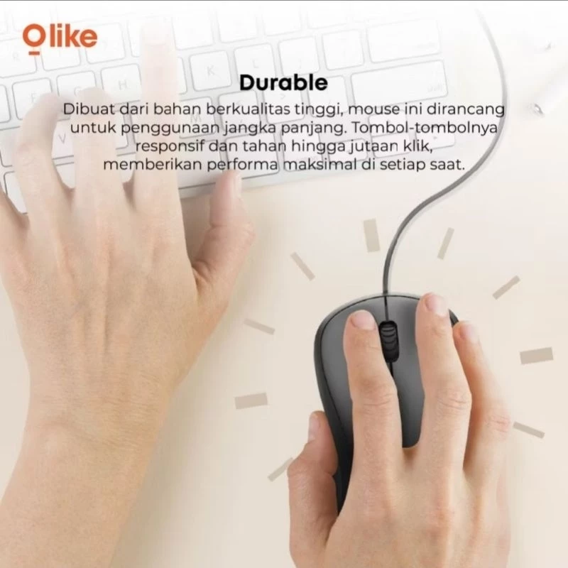 Dibuat dari bahan berkualitas tinggi, mouse ini siap menemani Anda dalam jangka panjang. Tombol responsif dan tahan hingga jutaan klik, menjadikannya pilihan andal untuk kebutuhan sehari-hari.