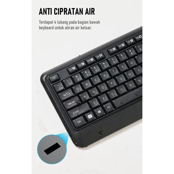 Desain splash-proof, terdapat lubang dibawah sebagai tempat keluar air