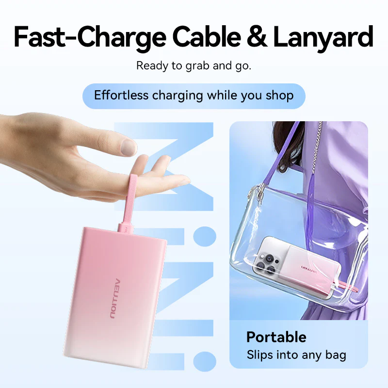 Dilengkapi Built in Cable USB Type-C to Lightning, cukup satu powerbank untuk mengisi daya iPhone maupun Android. Mendukung pengisian cepat dua arah, praktis tanpa perlu bawa banyak kabel saat bepergian.
