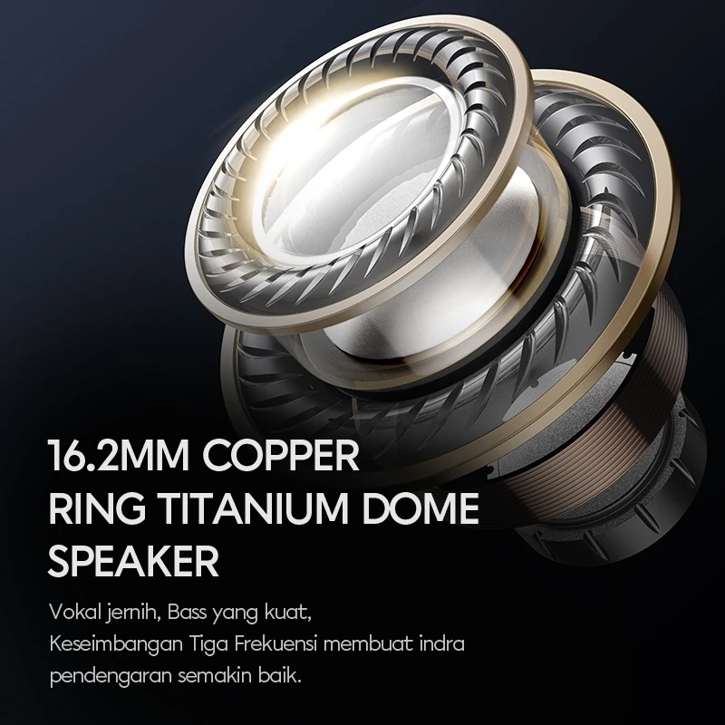 • Powerful Audio for music : EXTRA BASS with 16.2mm Copper Ring Titanium Dome Speaker