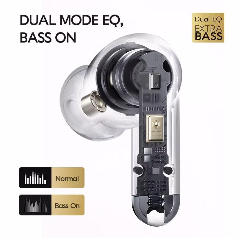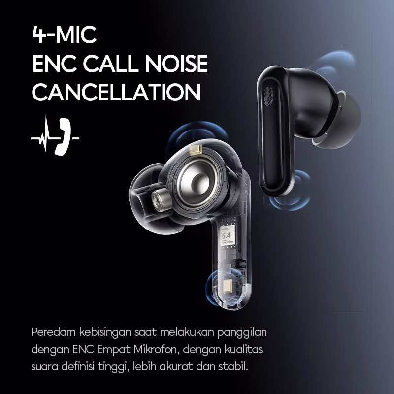 1. Suara jernih dengan efek bass maksimal. Dilengkapi fitur Adaptive ANC untuk meredam kebisingan, saat melakukan panggilan Telepon di keramaian.