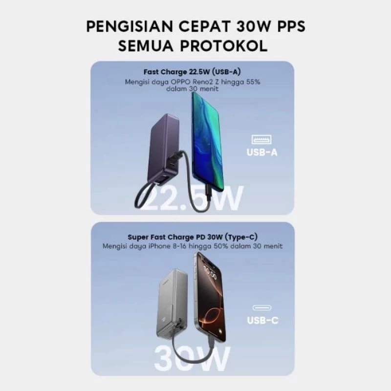 3. 22.5W (USB A) & 30W (TYPE C) fast charging output, supports fast charging of a variety of mobile phones,