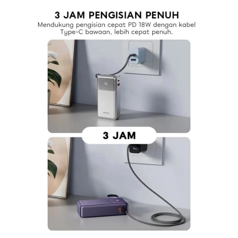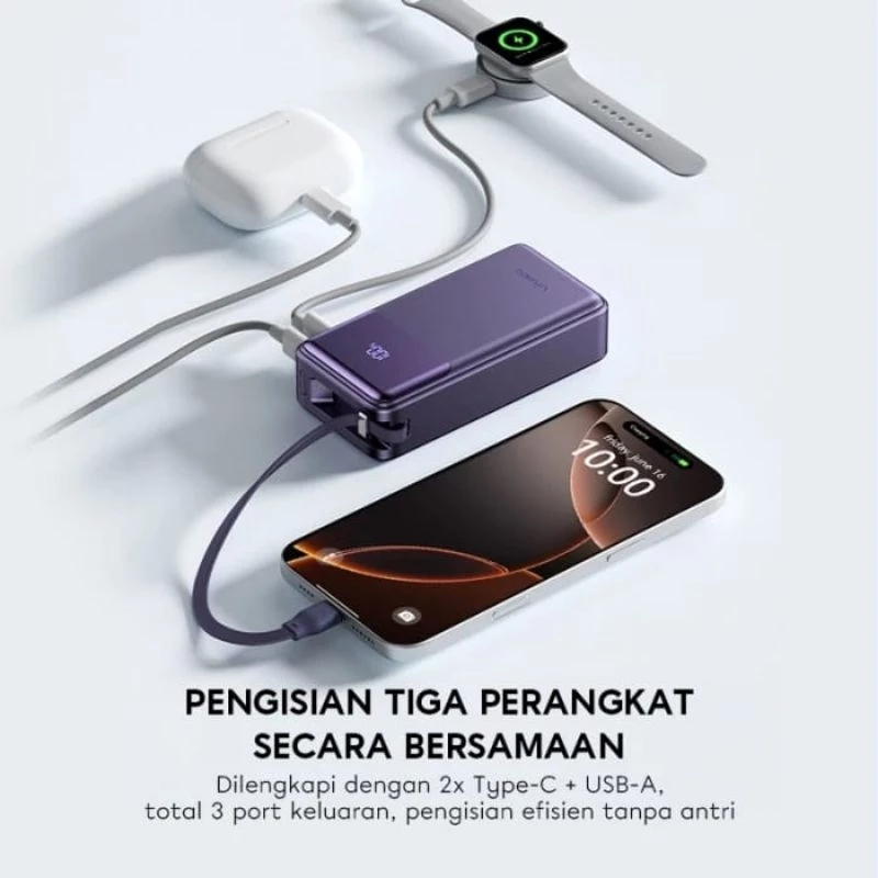 4. Type-C port input + 3 output ports (Type C + USB A + Integrated Type C Cable), making charging more convenient