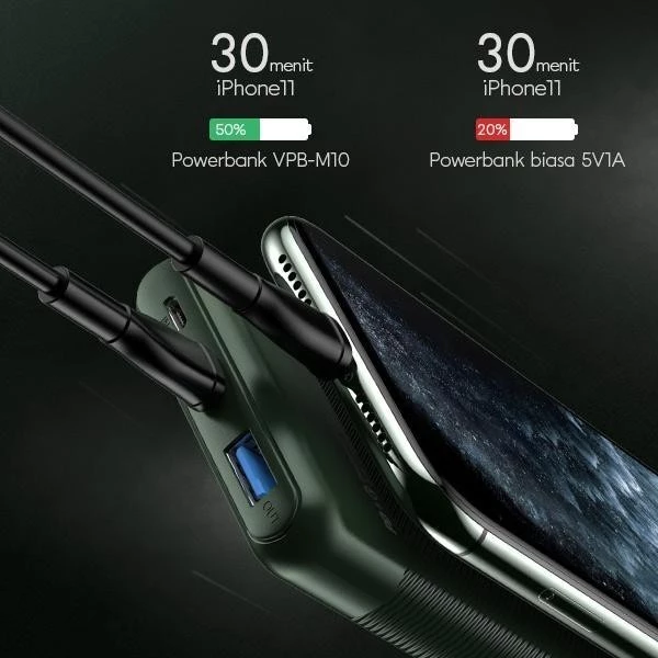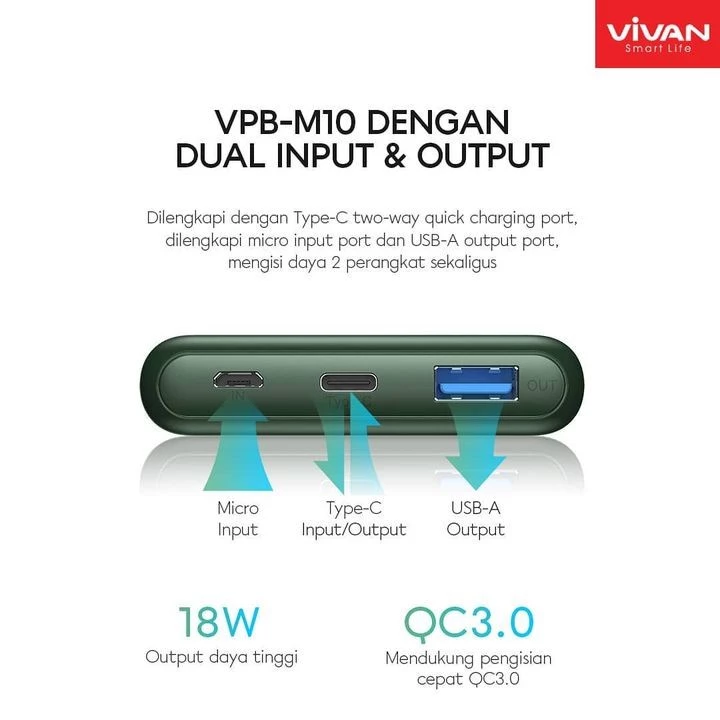 Dual input Type C dan Micro USB, untuk mudahkan proses pengisian daya powerbank.